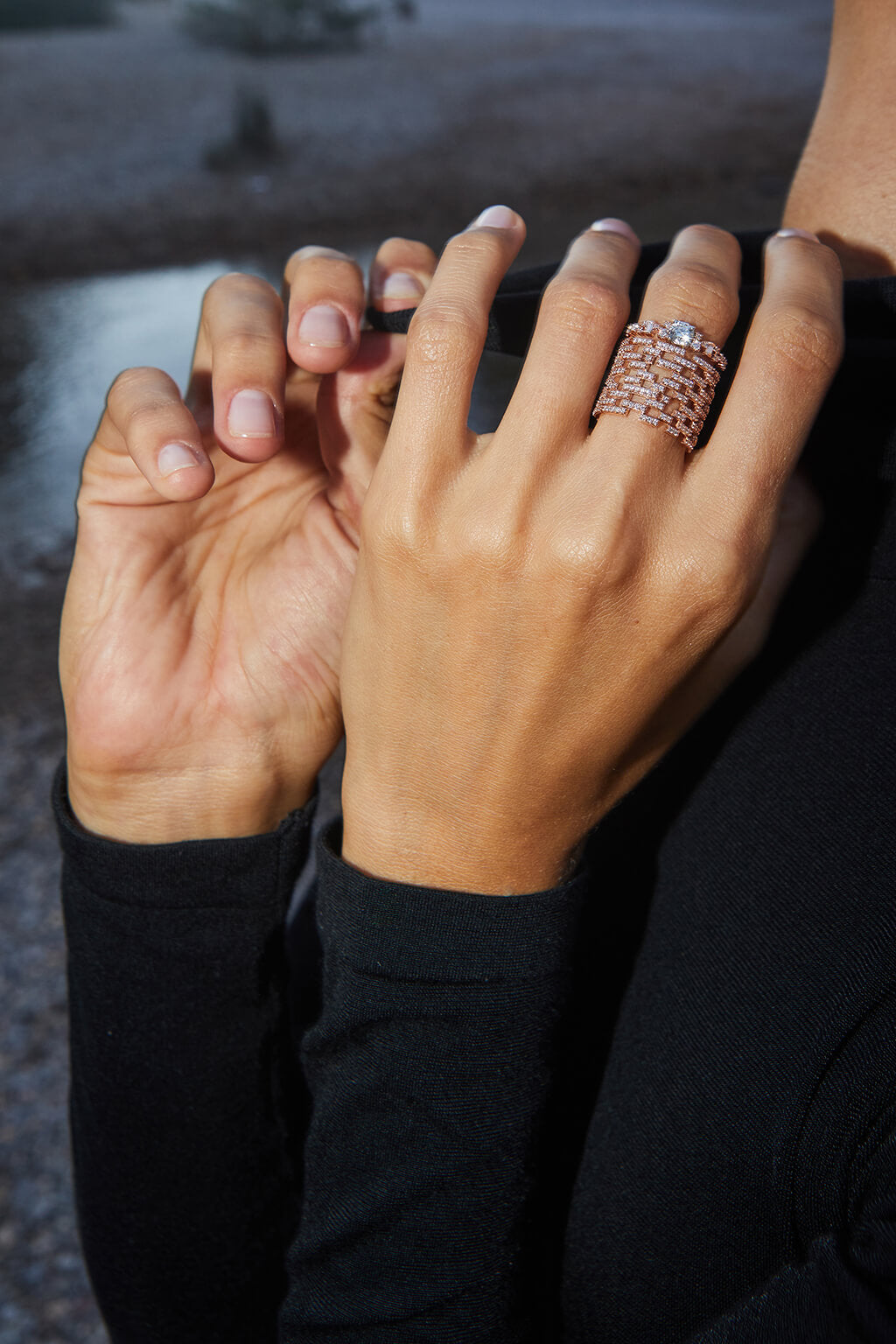Two rings in one, the Middle Brick diamonds gold ring easily detaches from the Open Brick diamonds gold ring to create different looks.