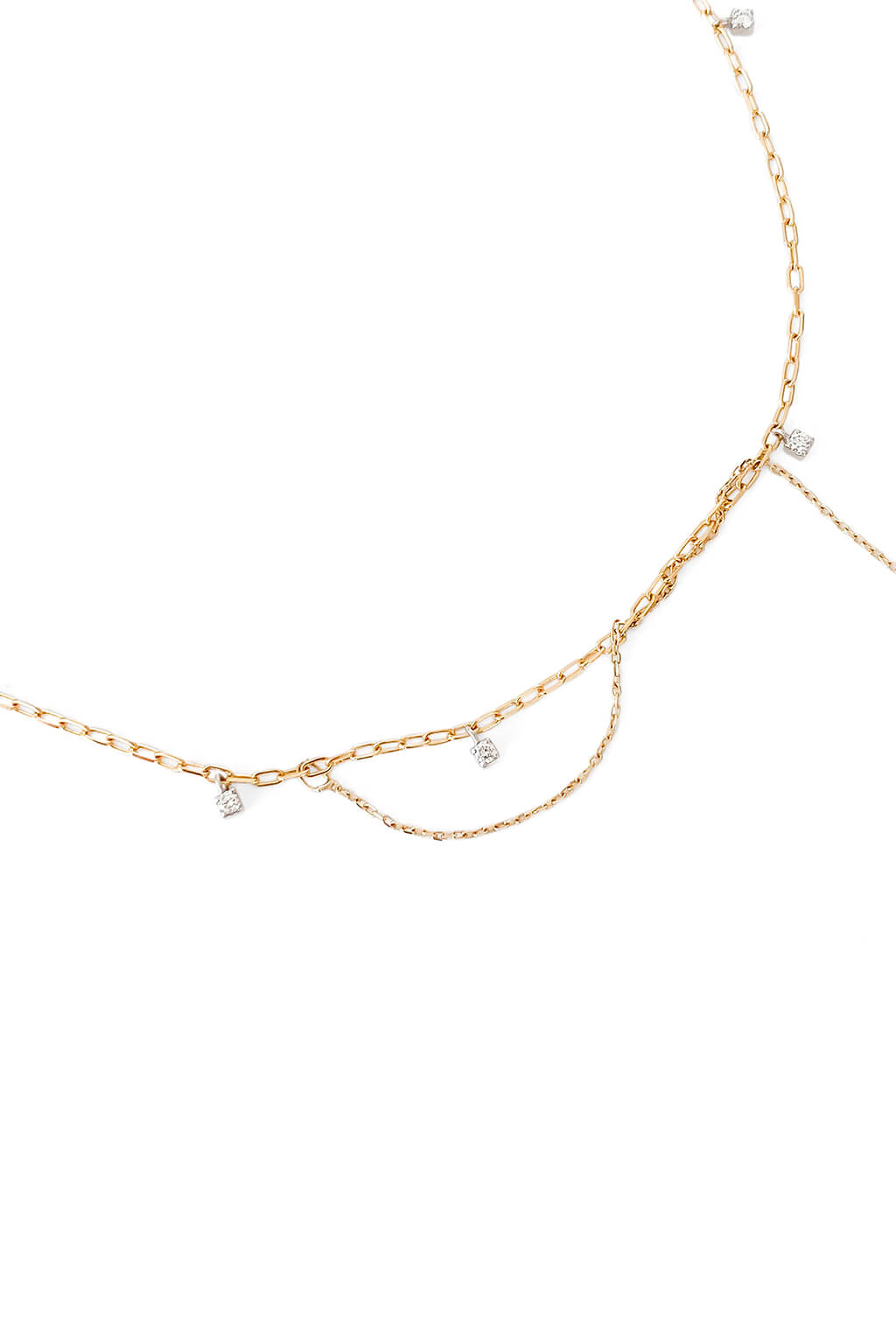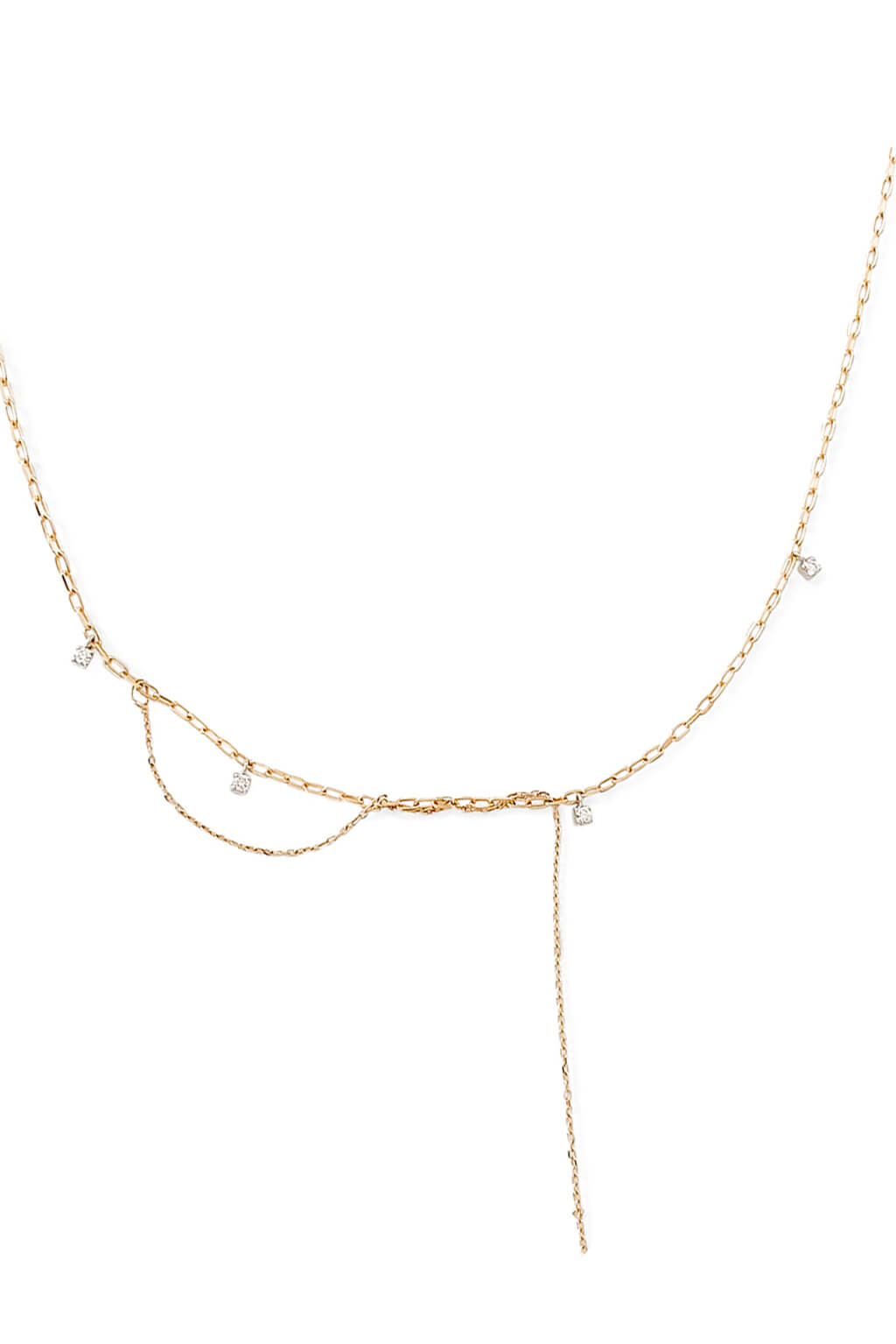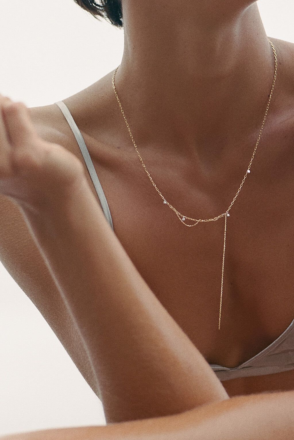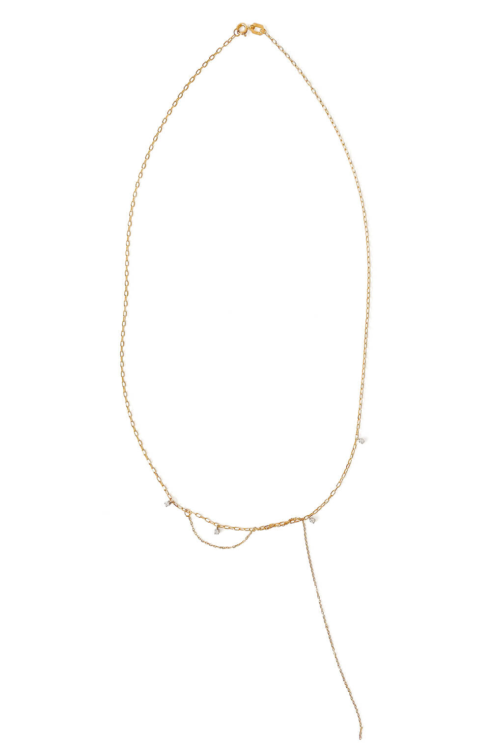 Handcrafted necklace with a 50 cm long 18K yellow gold chain and four brilliant cut diamonds set in 18K white gold.