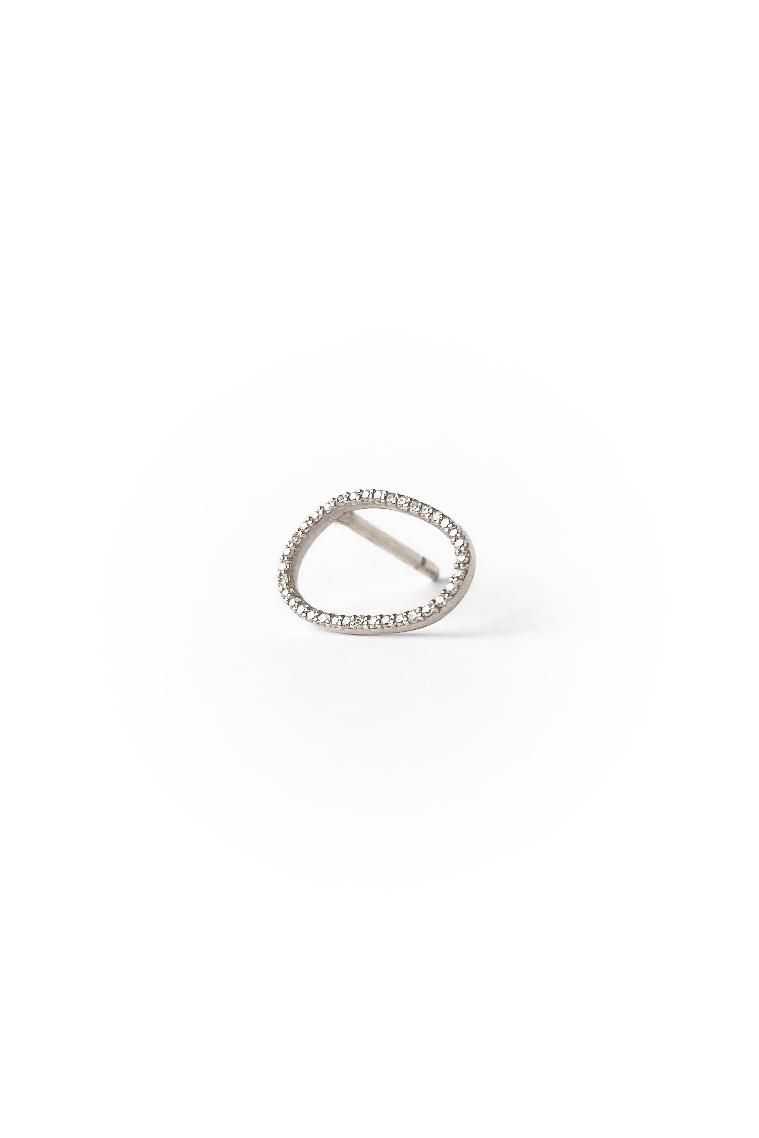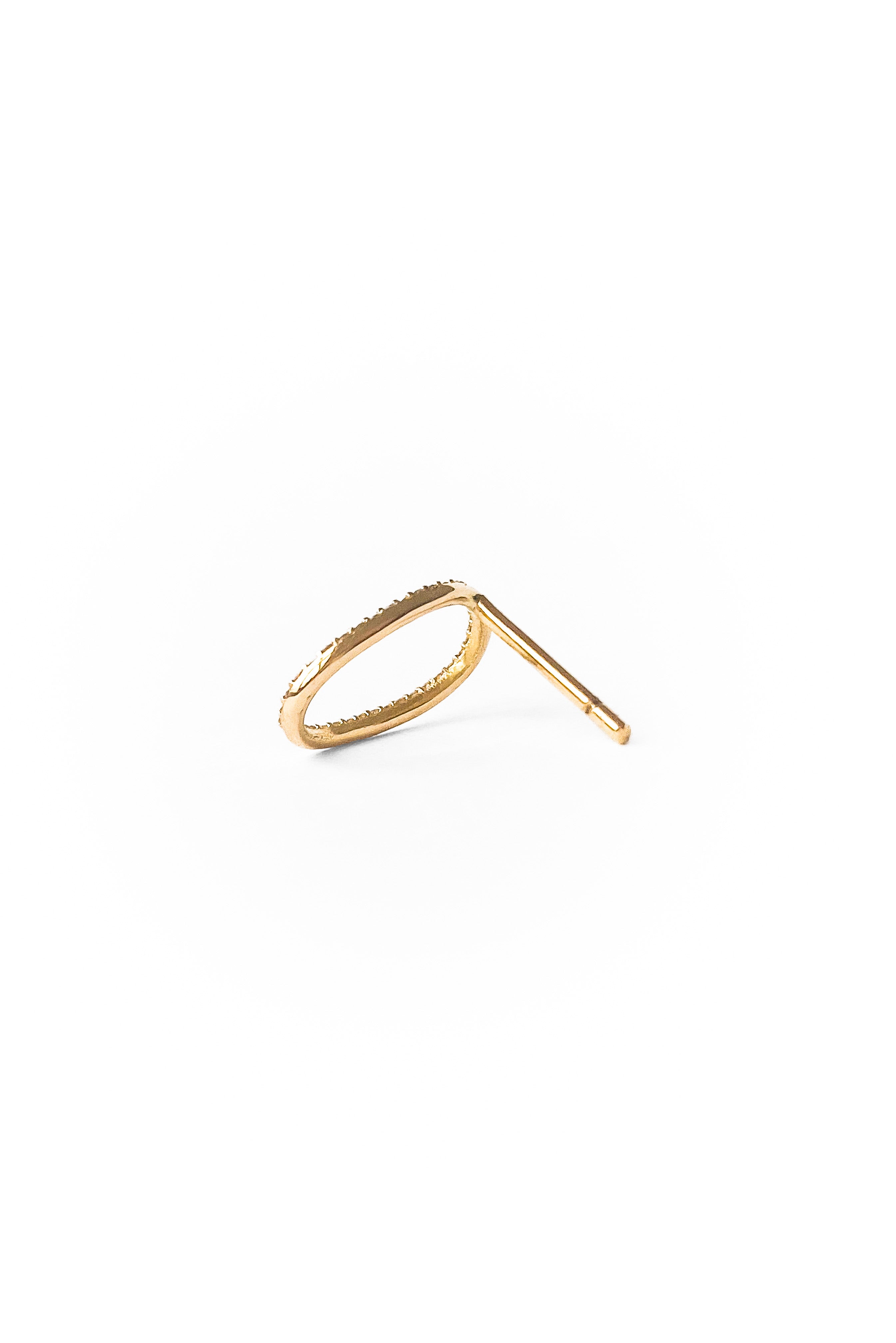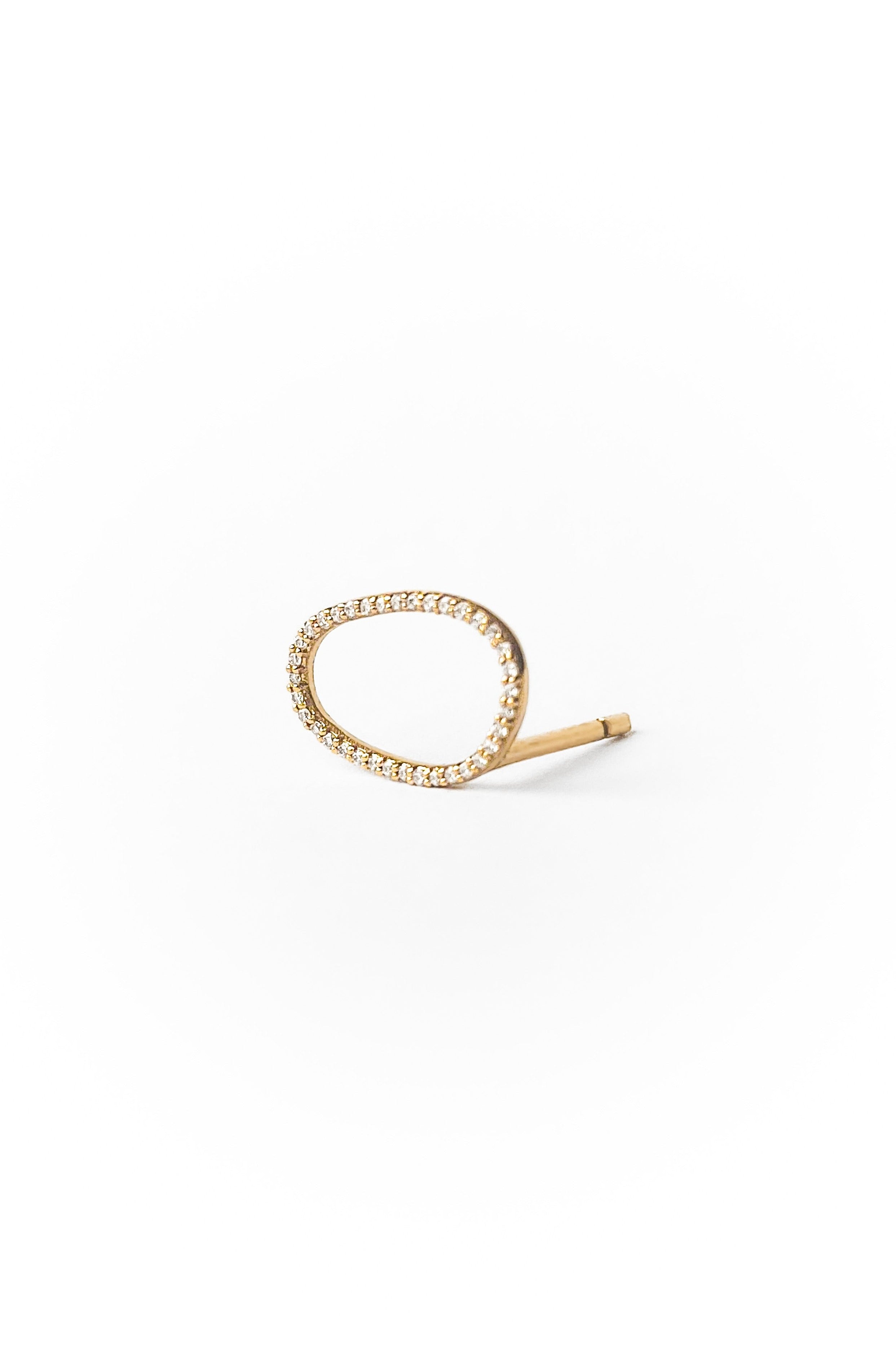 Irregular oval earring 13mm in size in 18k gold and diamonds.