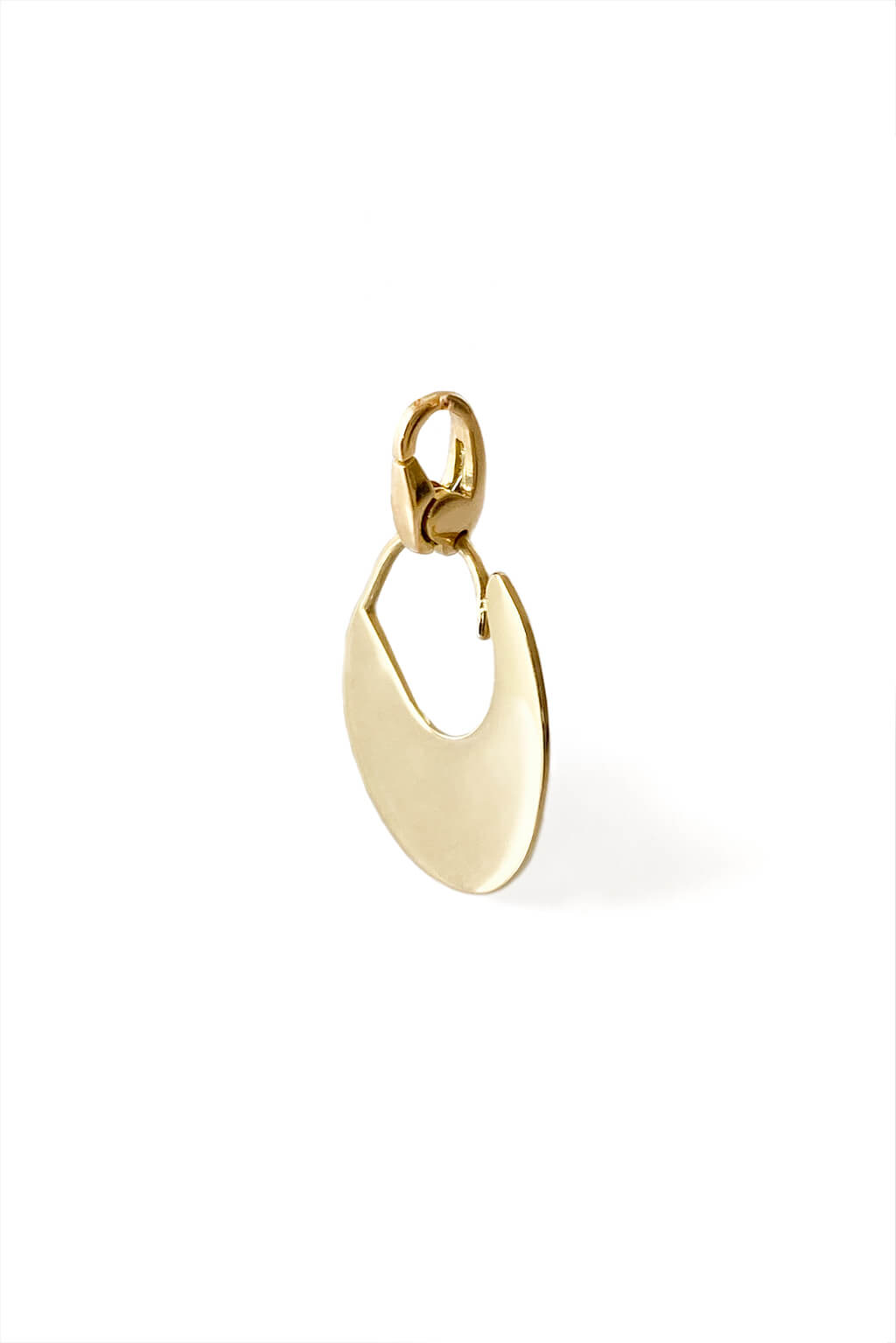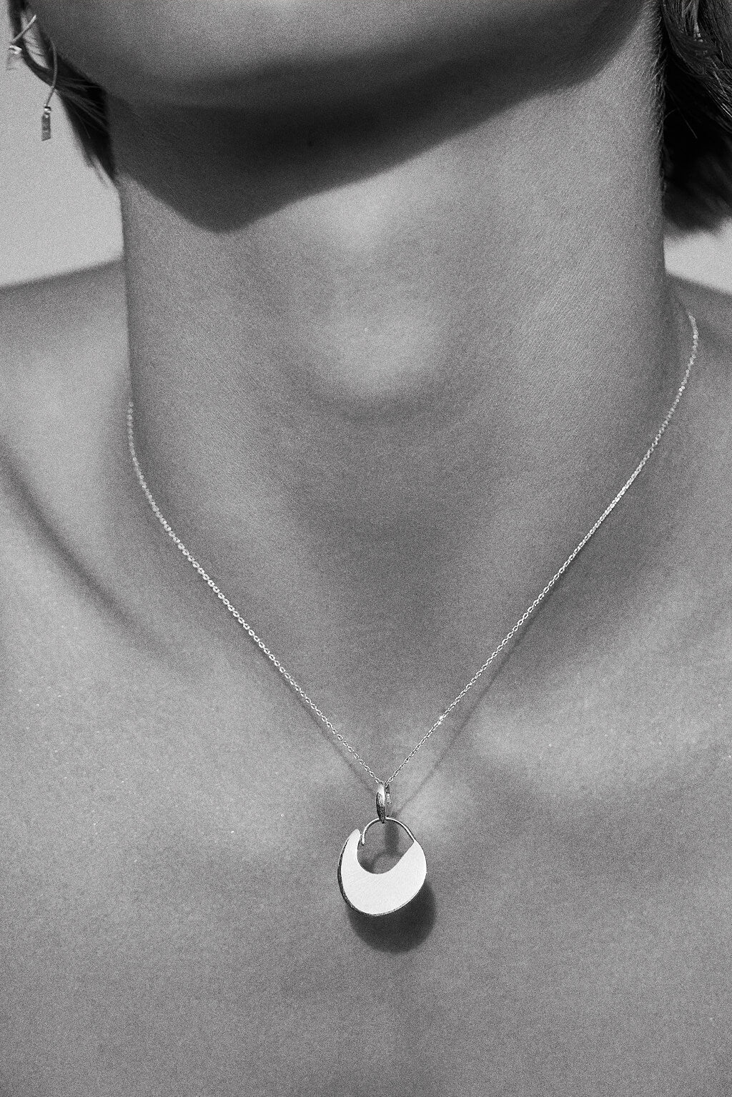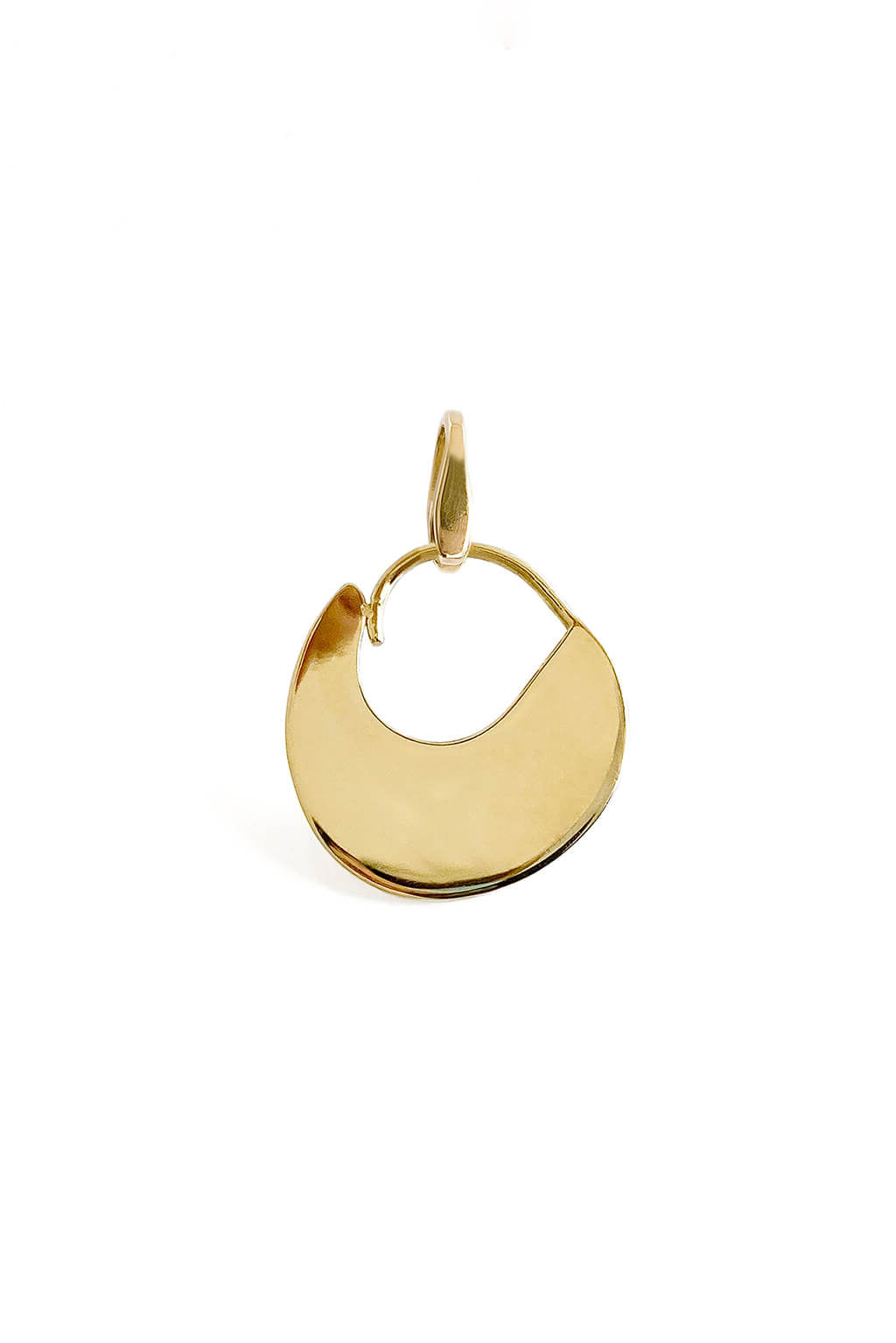 Handcrafted pendant in 18K yellow gold, 0.6 mm thick and dimensions: 1.9 x 2 cm in the shape of a half moon.