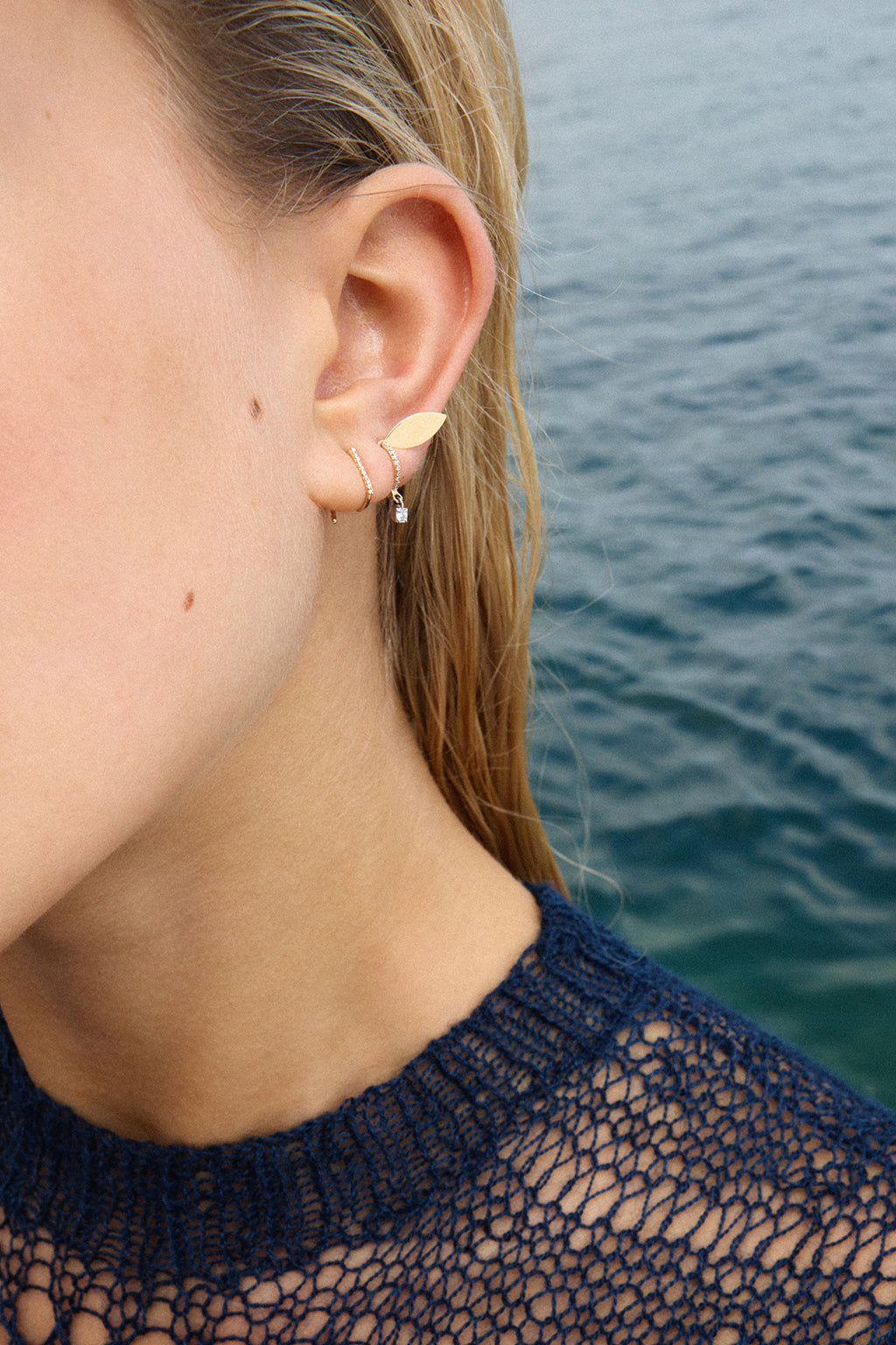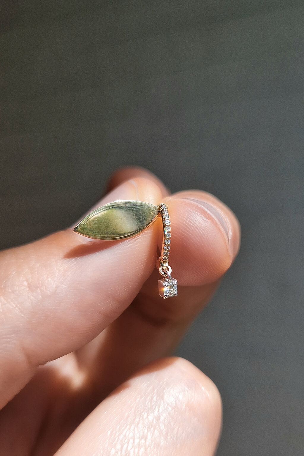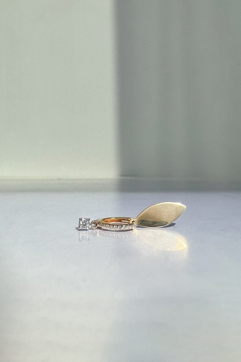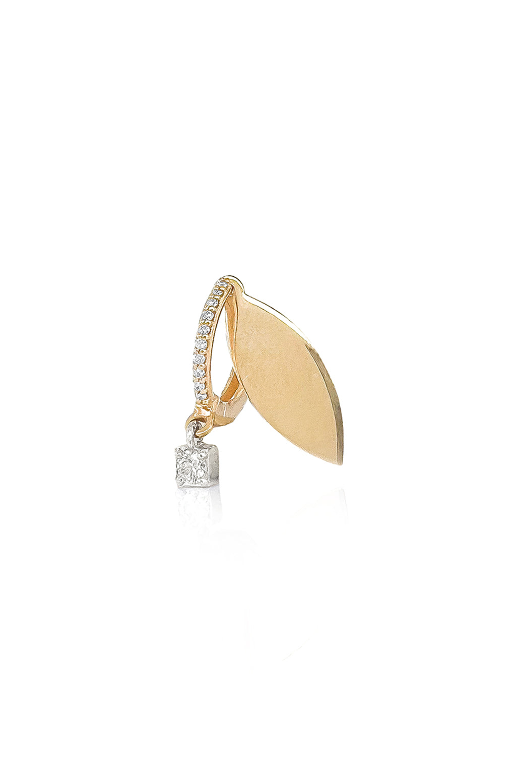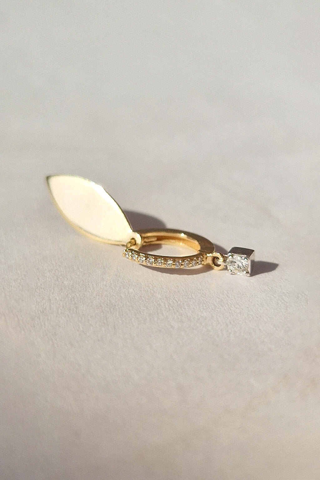 Classic Diamonds bangle in 18K yellow gold with a 2 mm diamond in a white gold square setting. It contains a 12 x 5 mm detachable leaf-shaped plate that can be placed in other earrings. Bangle width of 1,1 mm and internal diameter of 7 mm.