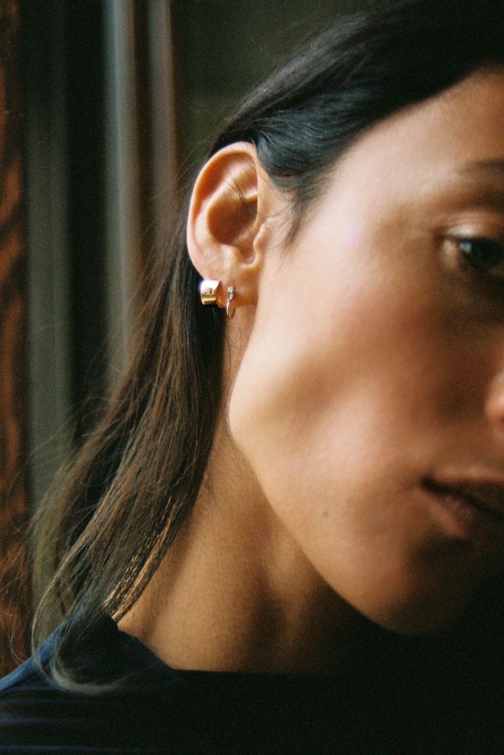 Simple, versatile and bold. Two earring options in one and two different views of the same piece, the front and the back.