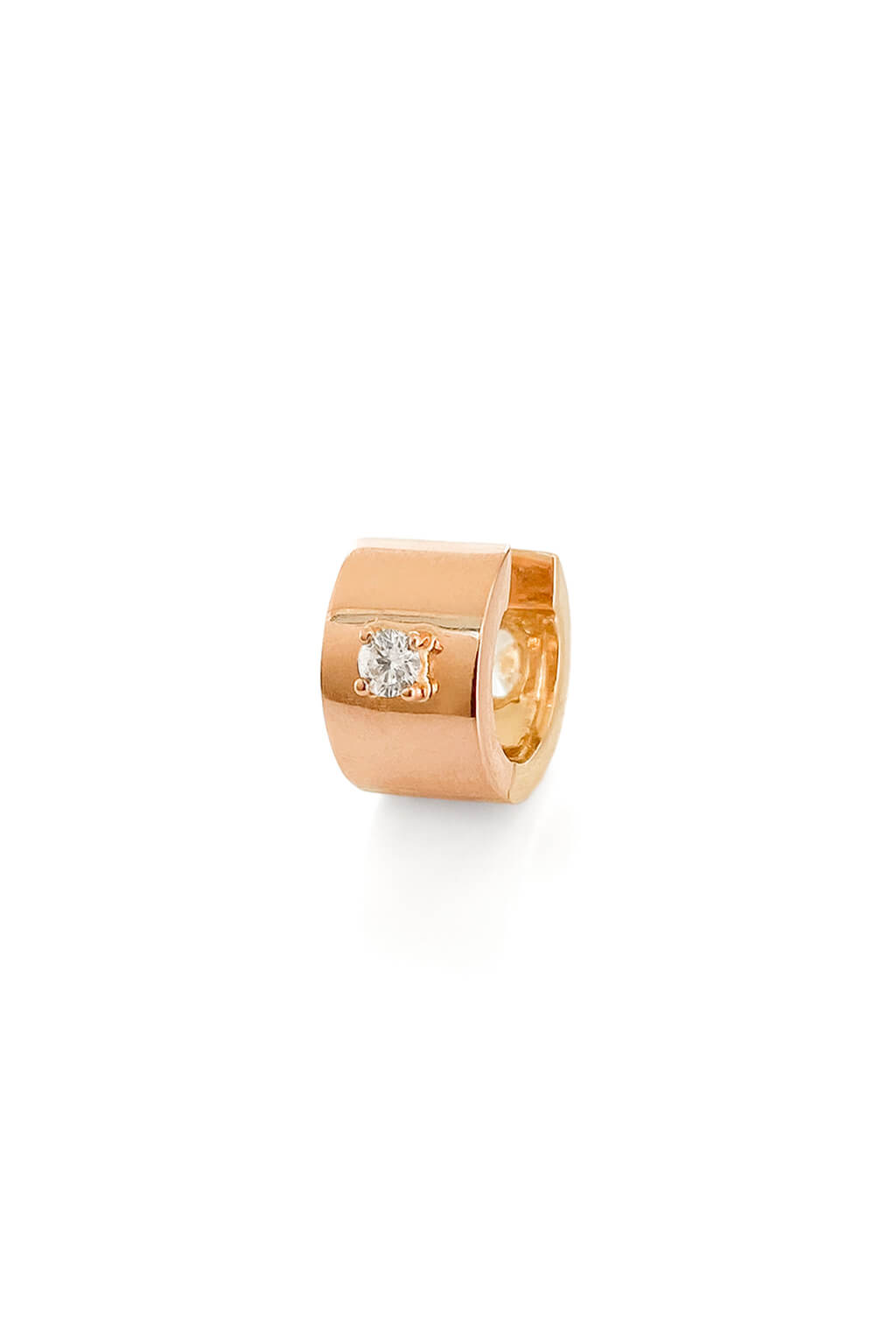 18K gold earring. Articulated ring with a width of 6 mm and an internal diameter of 7 mm. Two different colored articulated halves, pink and yellow, with different diamond cuts on each side.