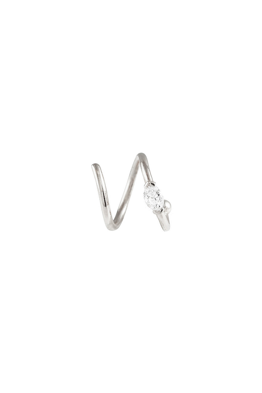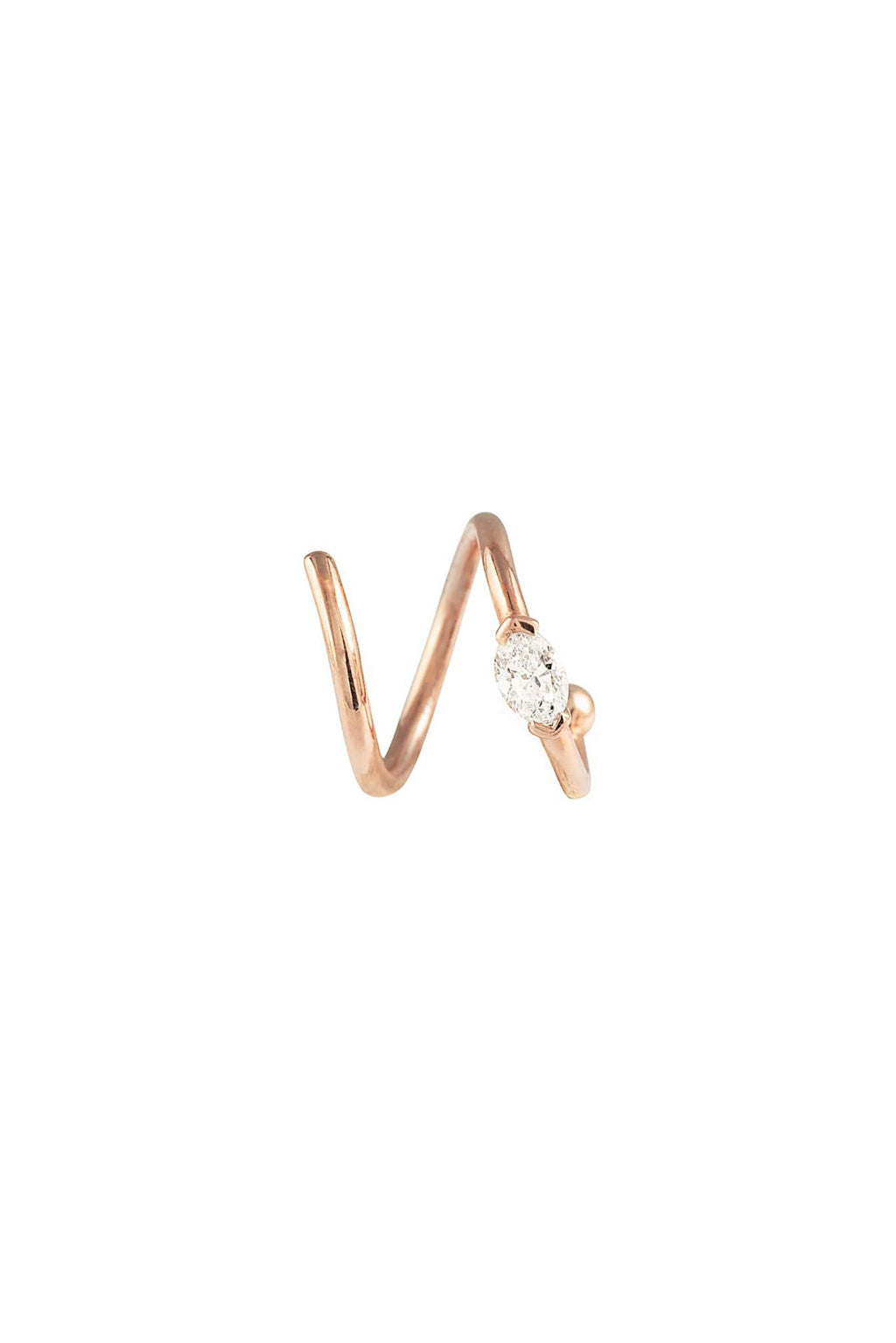 Handcrafted in 18K gold with a small marquise shaped diamond. Diameter is 9 mm.