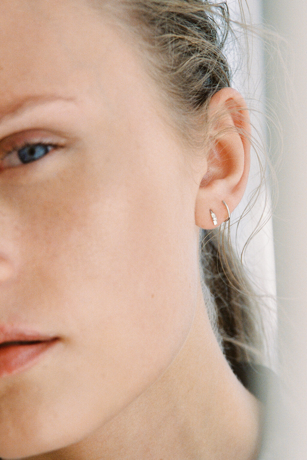 Snake collection earrings require a single hole in the earlobe and create the effect of wearing several earrings.
