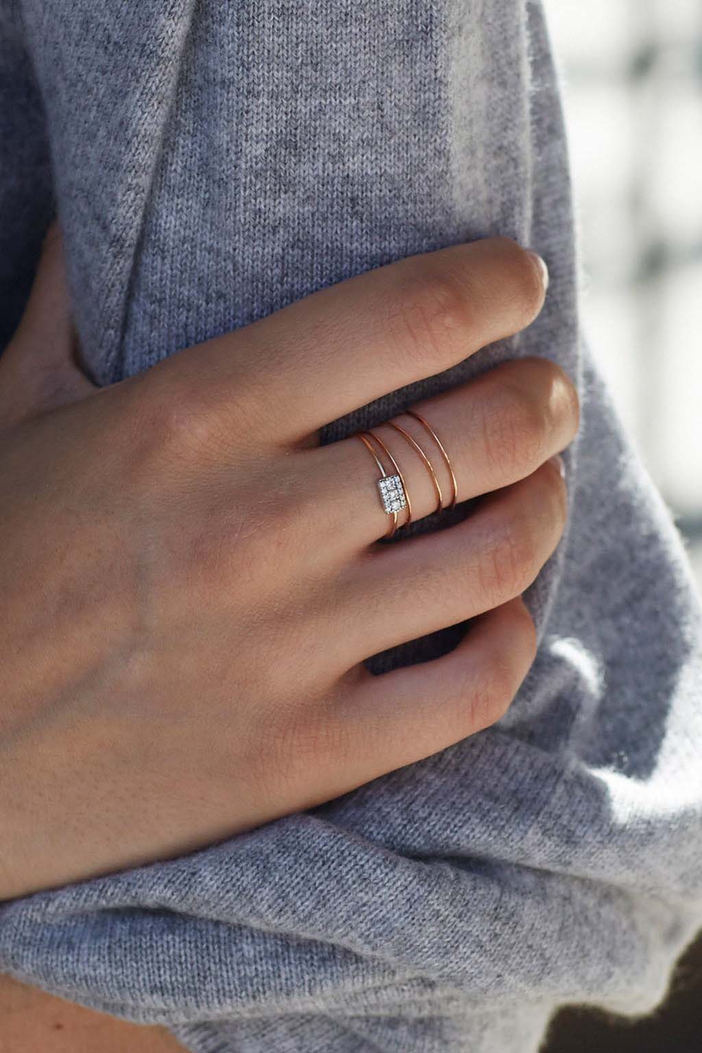 Handcrafted in 18K rose gold with a 1 mm wide round band and a rectangular 4 x 6 mm diamond setting.