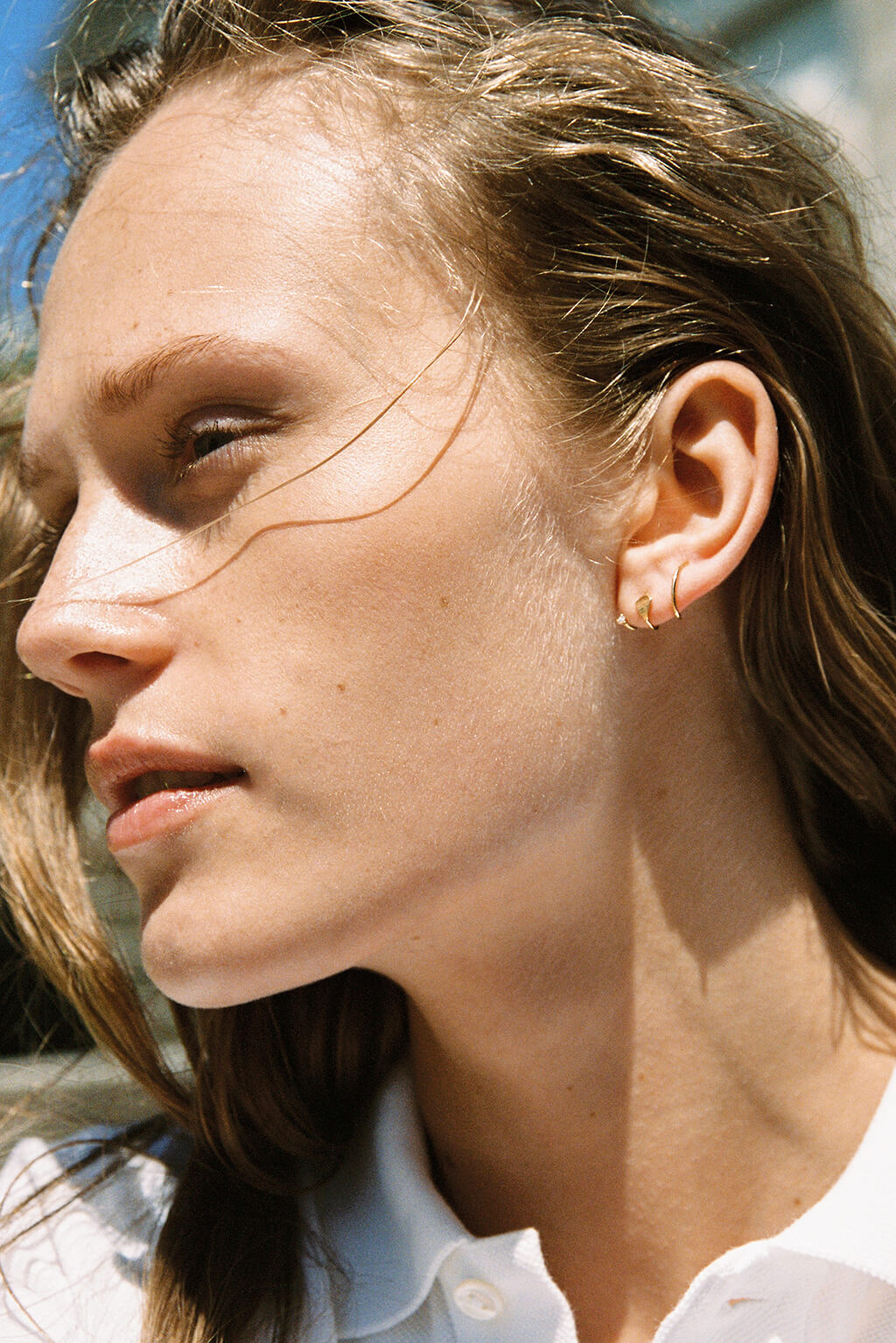 Los pendientes de la colección Snake necesitan un único agujero en el lóbulo y crean el efecto de aro múltiple.