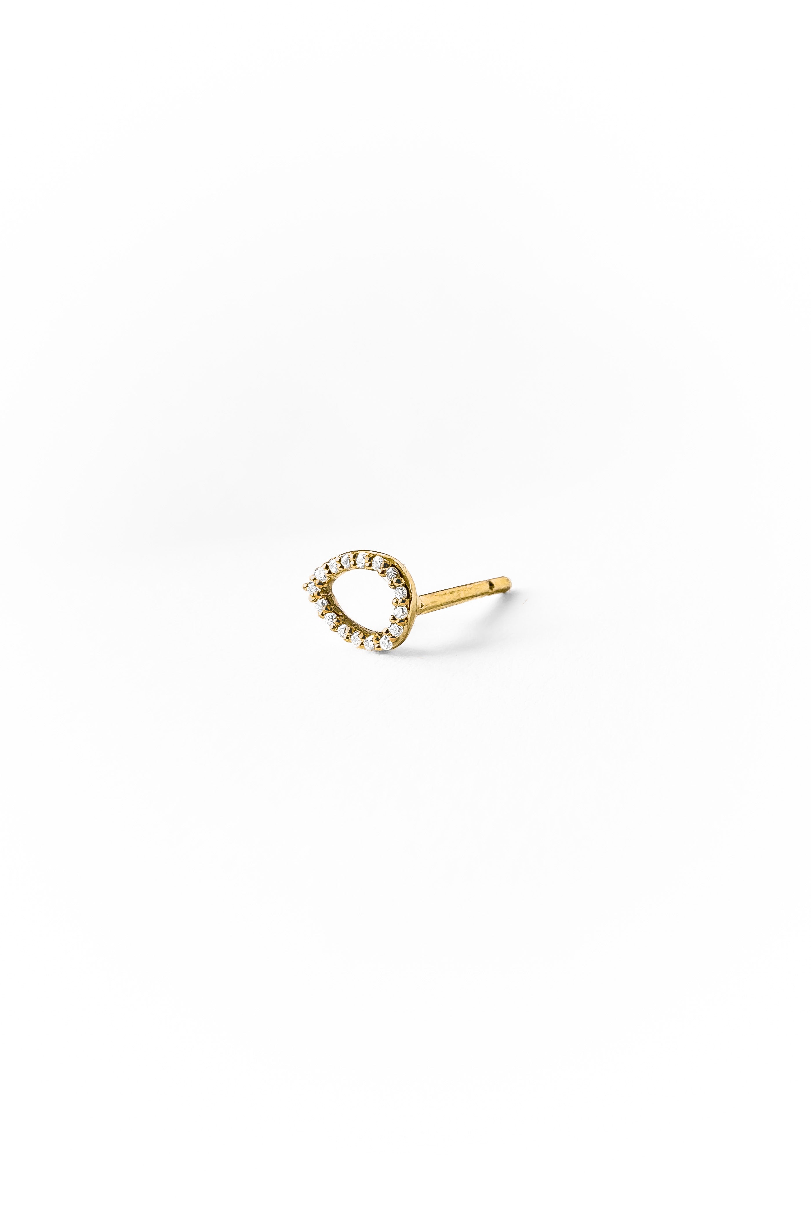 Pendiente con forma de gota de 6 mm de tamaño en oro de 18k y diamantes. Su forma y la posición de su espigo lo hacen perfecto para combinar con otros pendientes Bubble y alternarlo en diferentes agujeros y posiciones de ambas orejas.