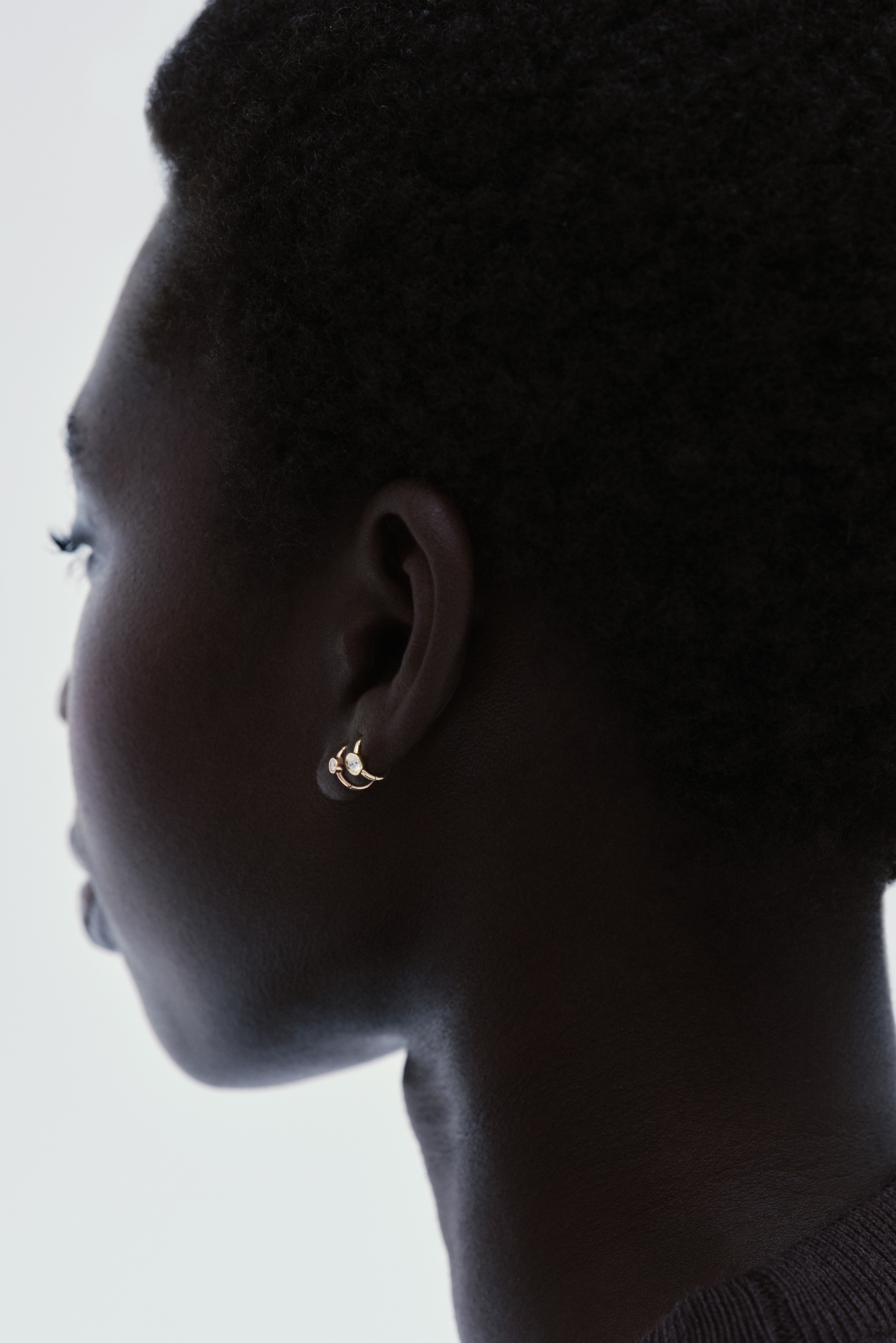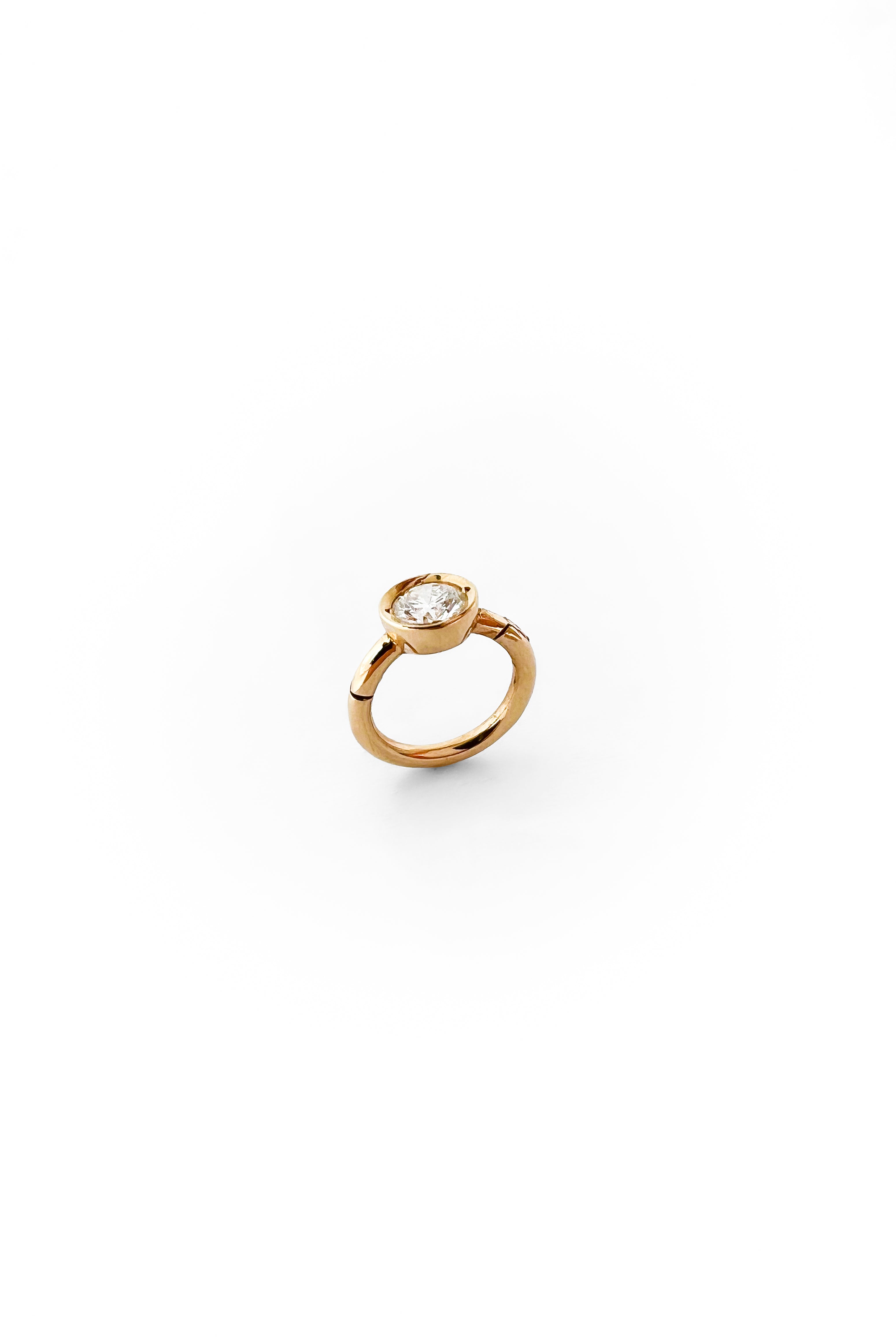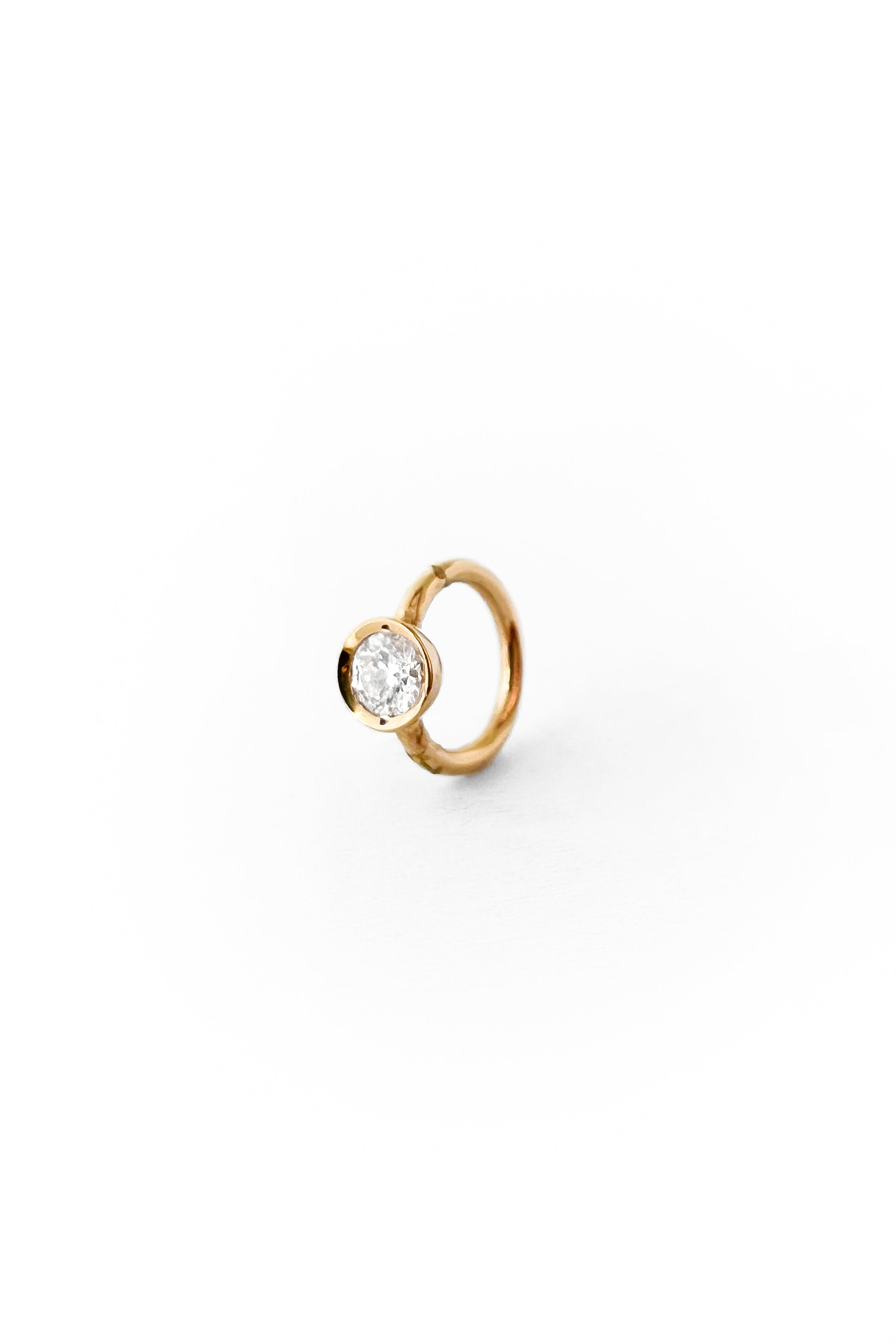 Cerceau en or 18k avec une section ronde de 1,1mm et un diamètre intérieur de 7mm avec une fermeture articulée cachée dans le cercle et un diamant de 3mm.